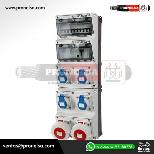 CAJA COMBINADA IP67 2 TOMACORRIENTES 32A 3P+N+T 400V CON 2 INTERRUPTORES TERMOMAGNÉTICOS 3X32A + 4 TOMACORRIENTES SCHUKO